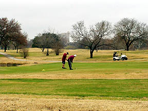 Walk circles the A&M golf course. Note players wearing A&M colors. |