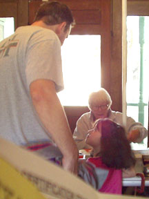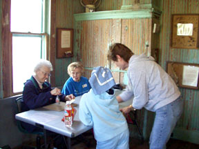 ![]() Volunteers punching Carol and Lenore's cards. |