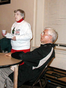 These are pictures taken during the social hour before the midnight walk for New Years 2004. Most of these pictures were taken by Lenore. There are several pages of pictures because I asked her to take pictures of all the groups standing around visiting. I think she did a terrific job. I hope you look through all the pages, especially if you were there. You may find yourself on the internet.